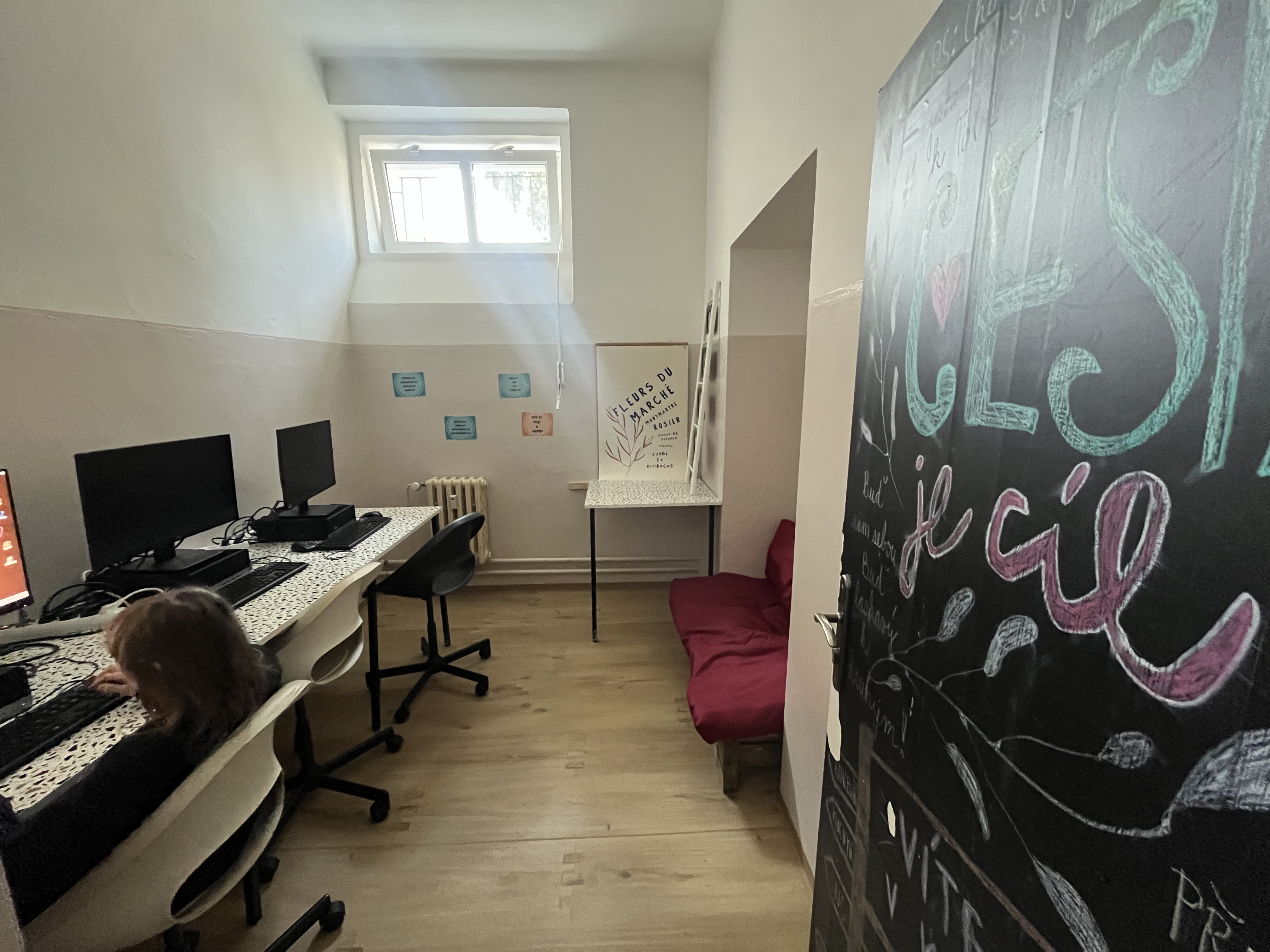 Máme zde i odpočinkovou zónu, kuchyňku a prostor pro přípravu na školní vyučování: