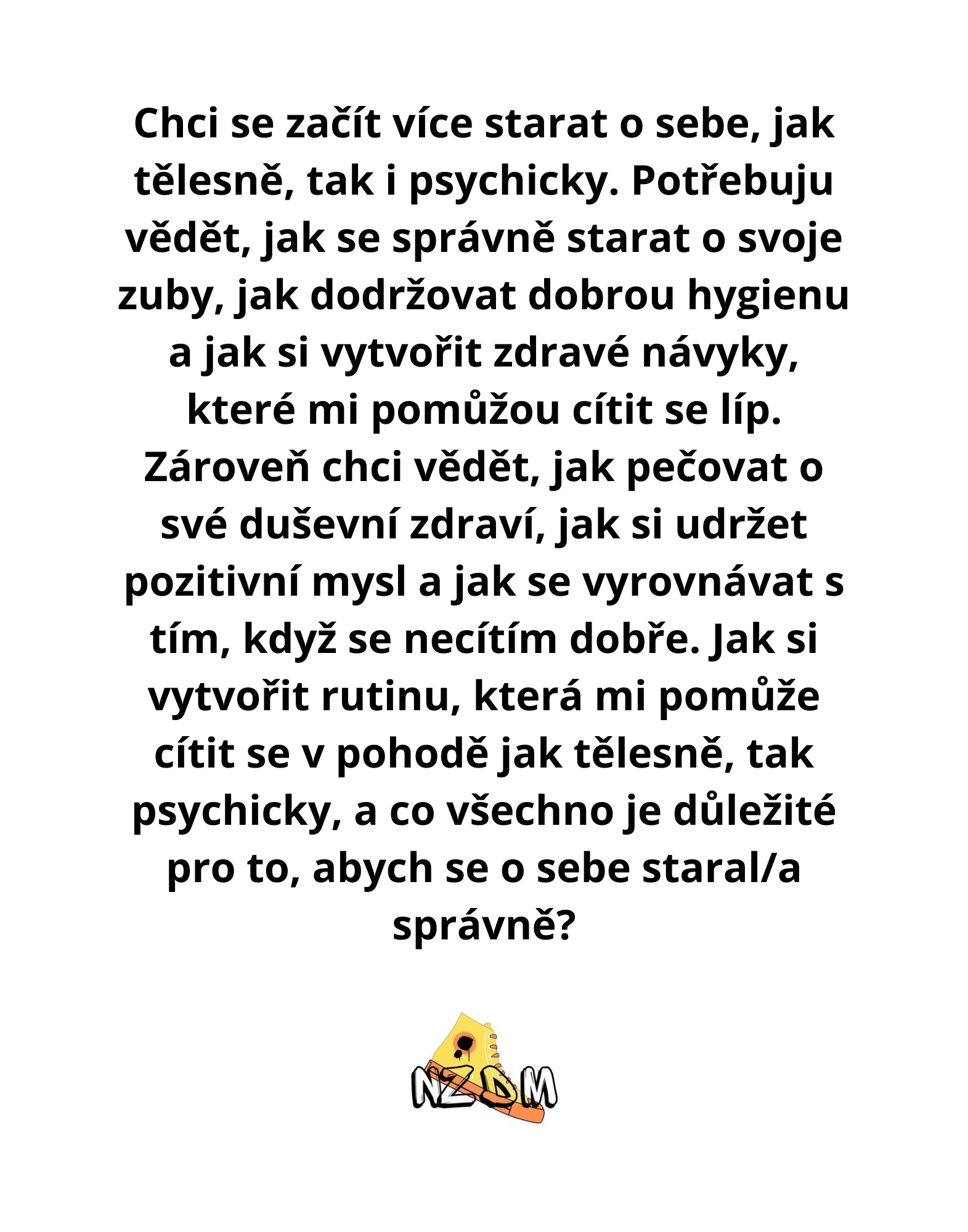 Co děláme » NZDM Bota - S ČÍM VÁM MŮŽEME POMOCI ? » NEVÍM JAK MÁM O SEBE PEČOVAT
