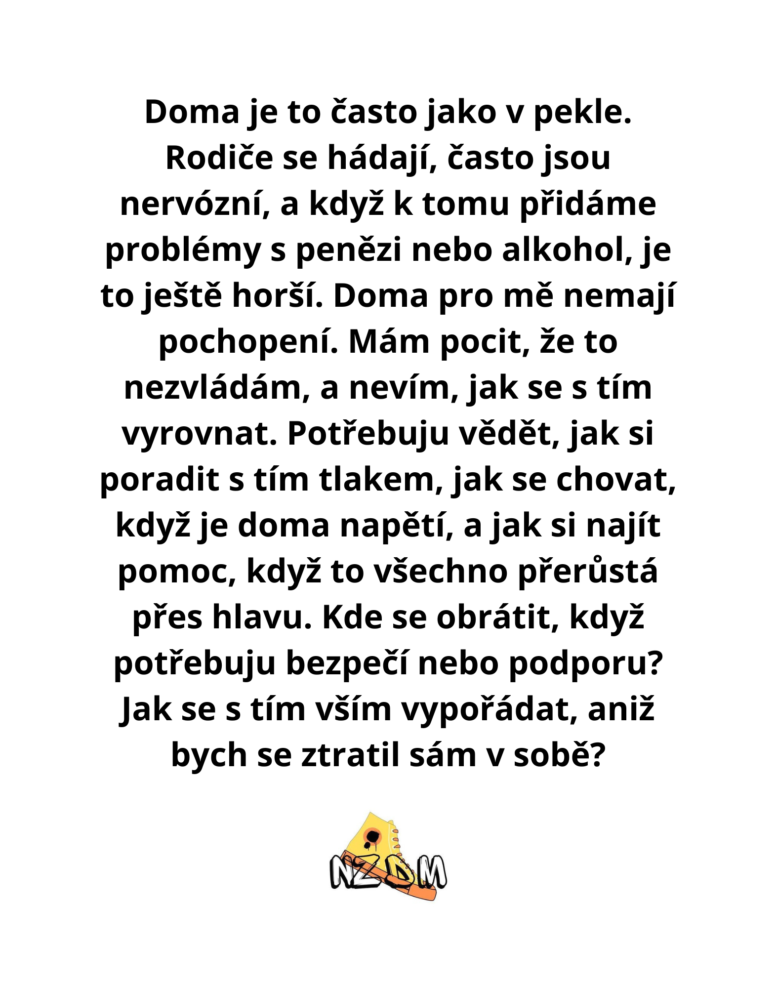 Co děláme » NZDM Bota - S ČÍM VÁM MŮŽEME POMOCI ? » DOMA JE TO PEKLO