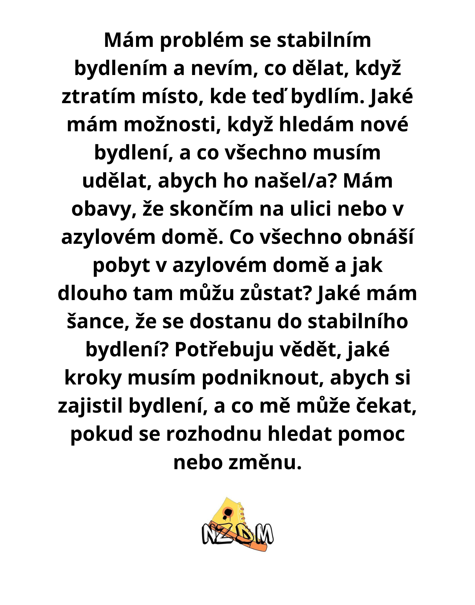 Co děláme » NZDM Bota - S ČÍM VÁM MŮŽEME POMOCI ? » MÁM KDE BYDLET