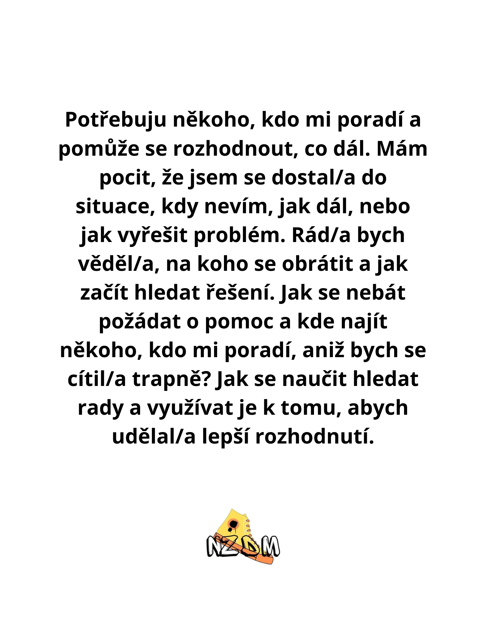 Co děláme » NZDM Bota - S ČÍM VÁM MŮŽEME POMOCI ? » POTŘEBUJI PORADIT