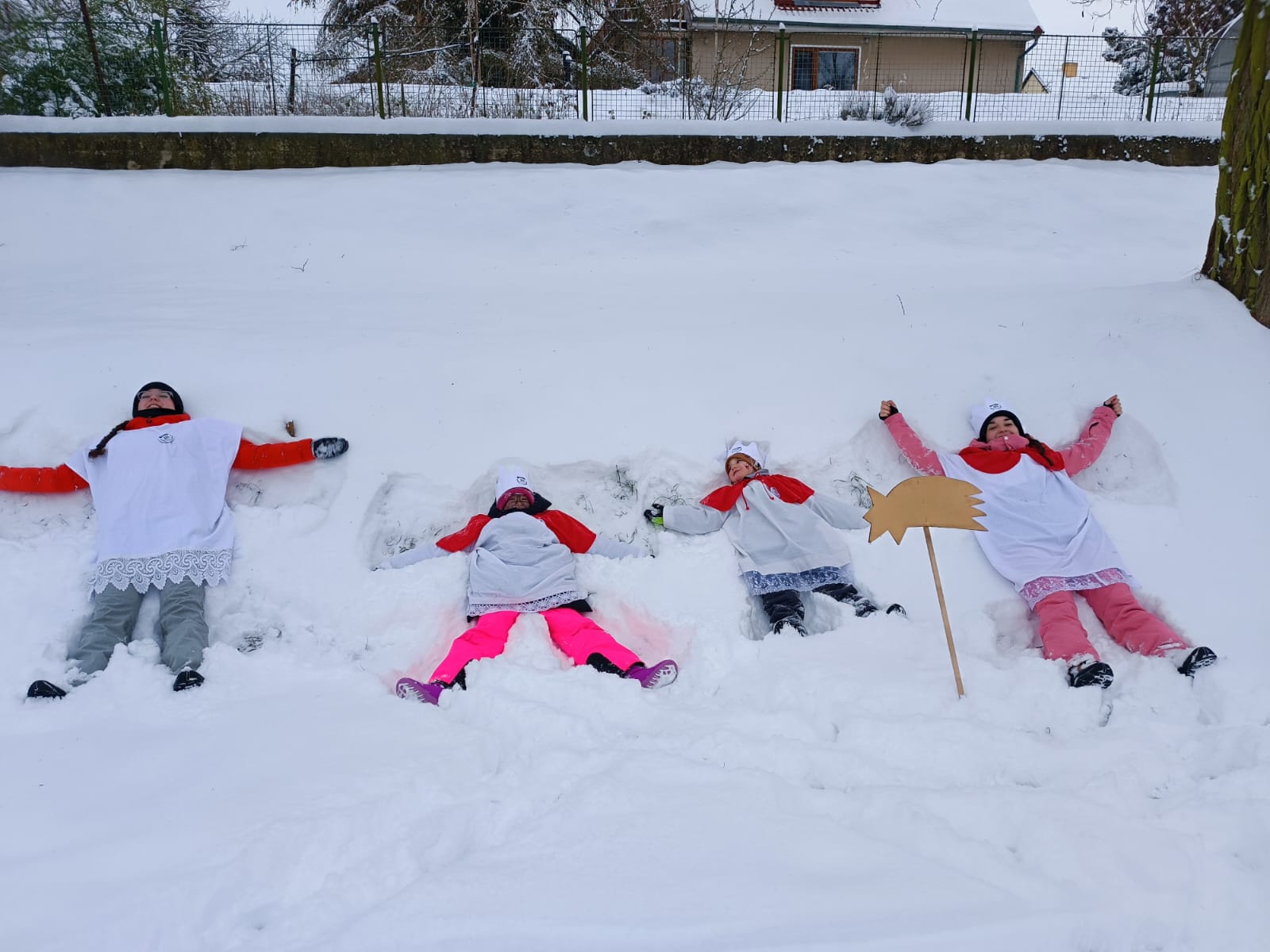 velice opatrně, aby se na náledí nikomu nic nestalo, žáci místní základní školy.