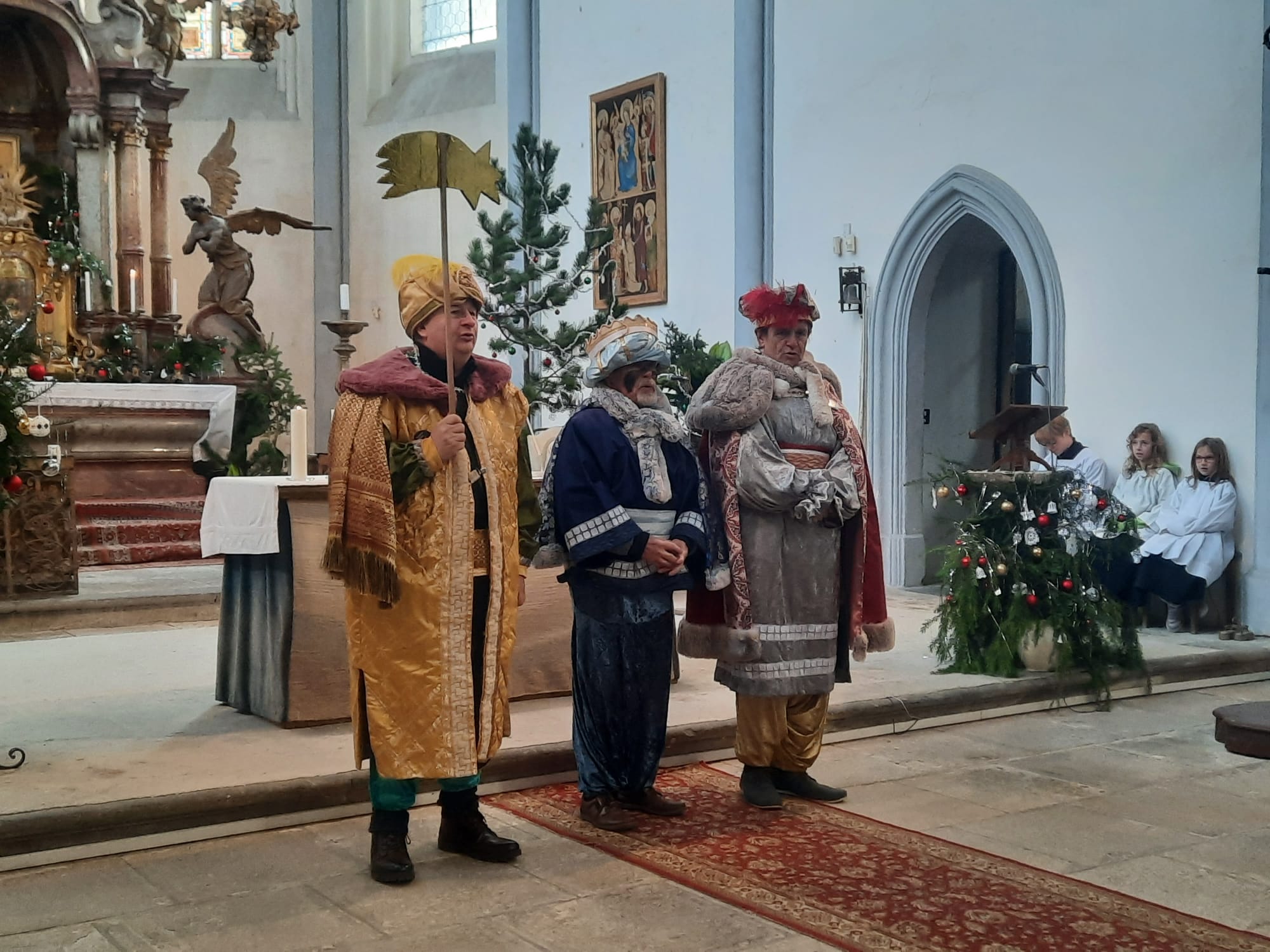 V neděli dorazili 3 králové i do roudnického kostela a pozdravili přítomné. Svými novými obleky